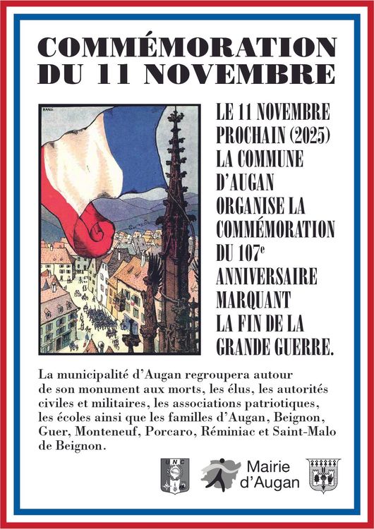 Le 11 Novembre prochain, Augan accueille la commémoration intercommunale de l'armistice.